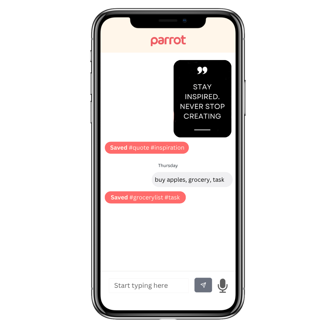 A screenshot, a quick thought, a link—just message Parrot and move on.No more figuring out where to put it so you can find it later.